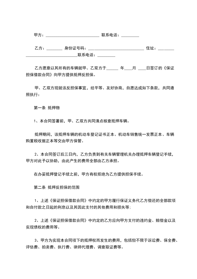 乙方愿意以其所有的车辆就甲、乙双方于______ 年____月 ____日签订的《保证担保借款合同》向甲方提供抵押反担保。