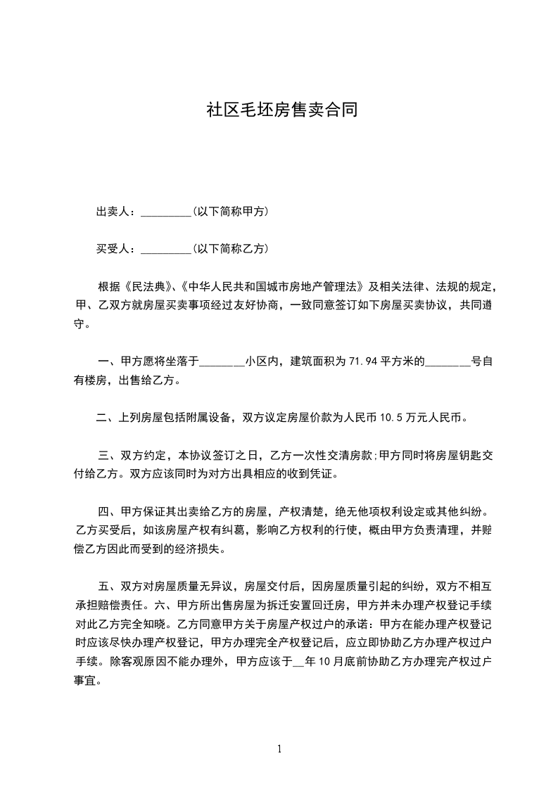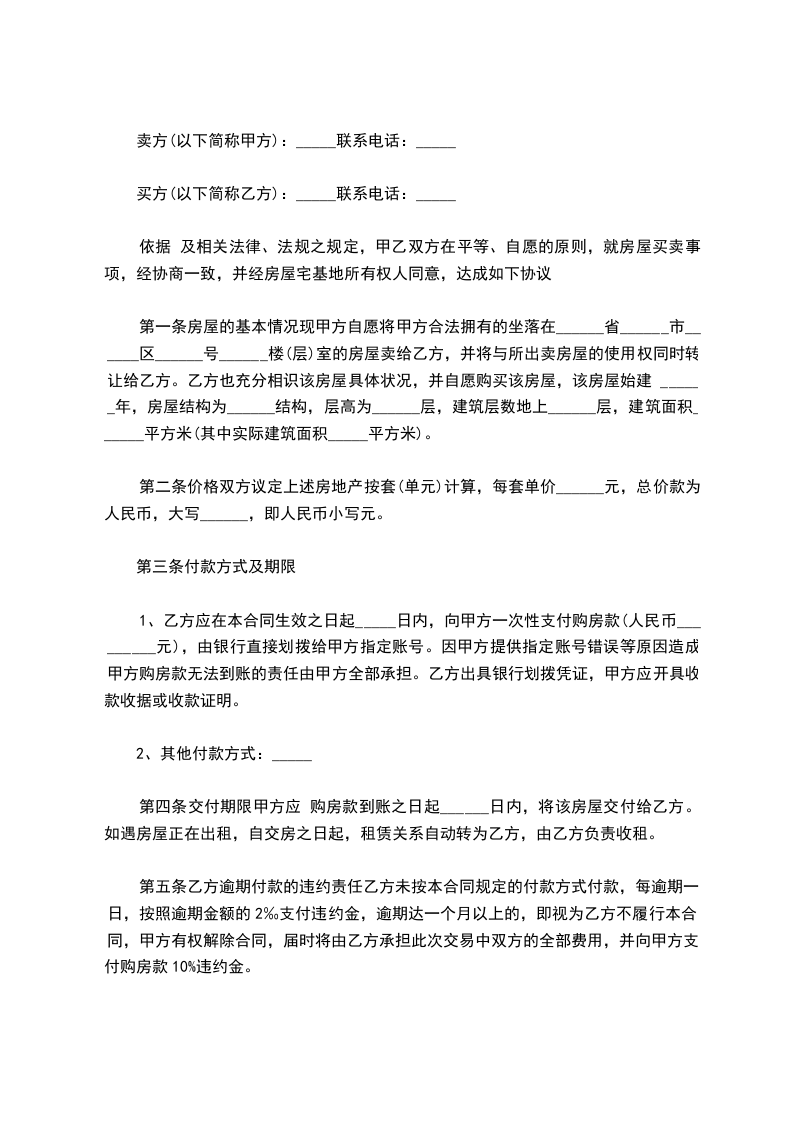 二、交房标准:甲方按交付时的房屋现状交付房屋,经双方当场踏勘,确认所交毛坯房的状况与甲方同开发商所签订的商品房买卖合同约定的交房标准完全一致,甲方对该房屋未进行任何装修,也未添置任何家俱和电器。