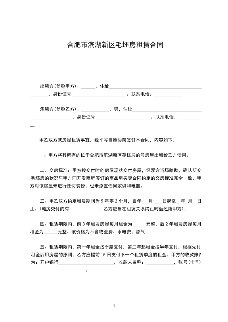 一、甲方将其所有的位于合肥市滨湖新区苑栋层的号房屋出租给乙方使用。