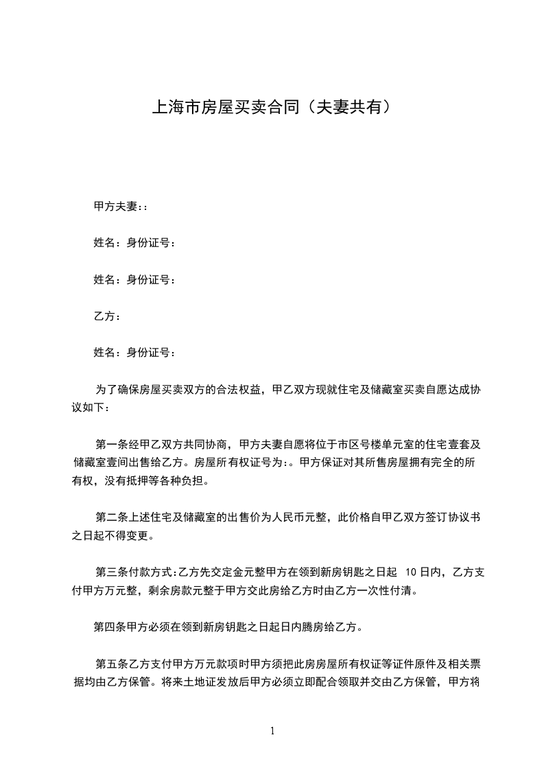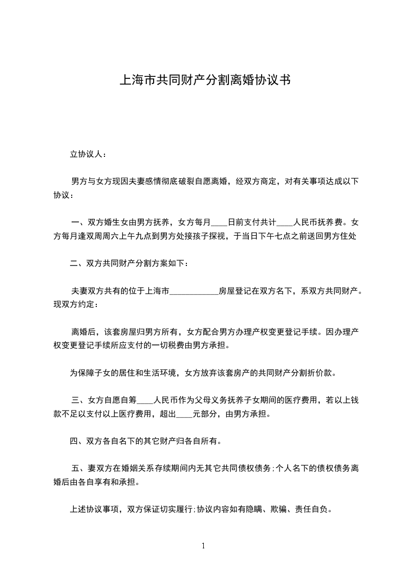夫妻双方共有的位于上海市____________房屋登记在双方名下,系双方共同财产。现双方约定:
