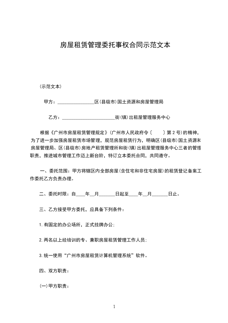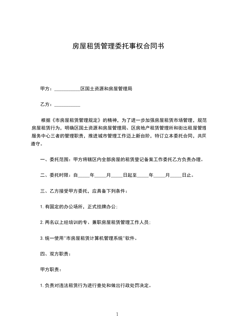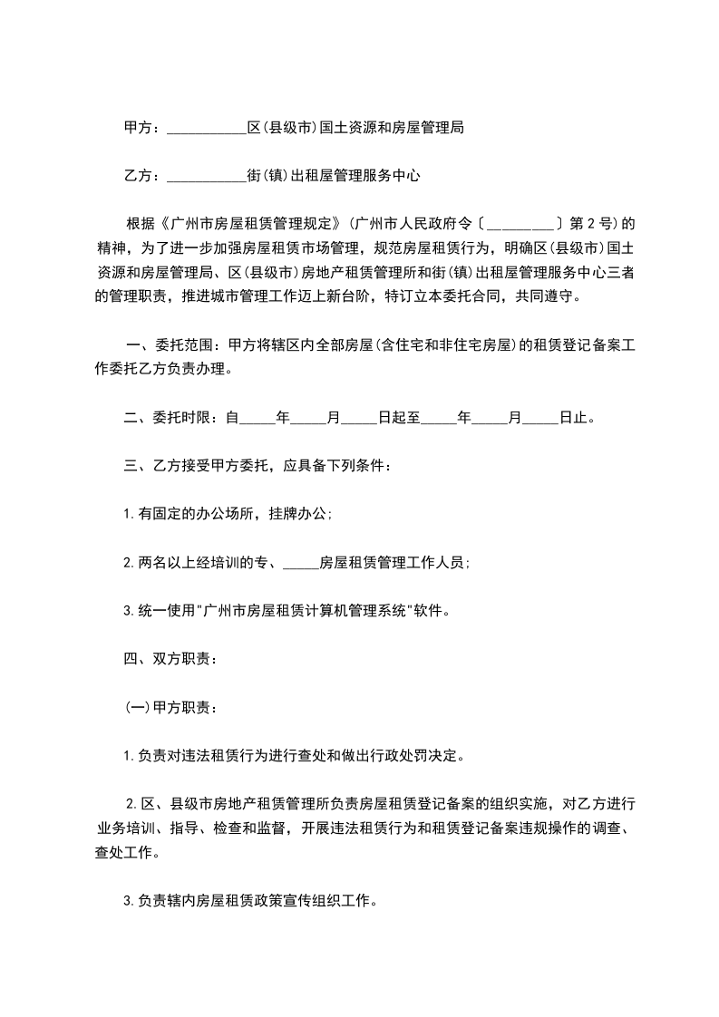 一、委托范围:甲方将辖区内全部房屋的租赁登记备案工作委托乙方负责办理。
