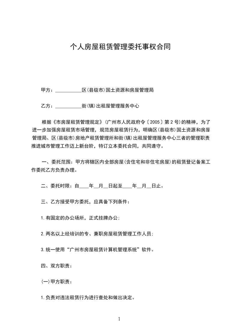 根据《市房屋租赁管理规定》的精神,为了进一步加强房屋租赁市场管理,规范房屋租赁行为,明确区国土资源和房屋管理局、区房地产租赁管理所和街出租屋管理服务中心三者的管理职责,推进城市管理工作迈上新台阶,特订立本委托合同,共同遵守。
