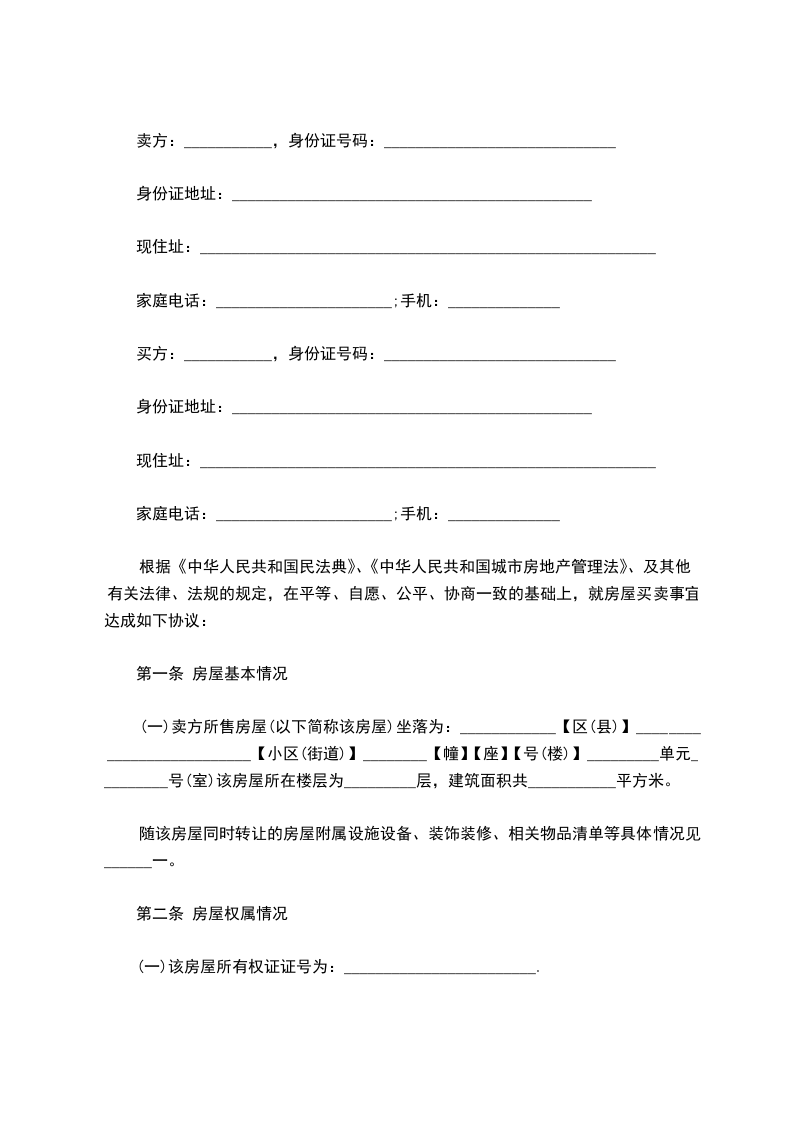 一、房屋的____________;坐落____________、面积____________、装修及设施____________、设备:____________