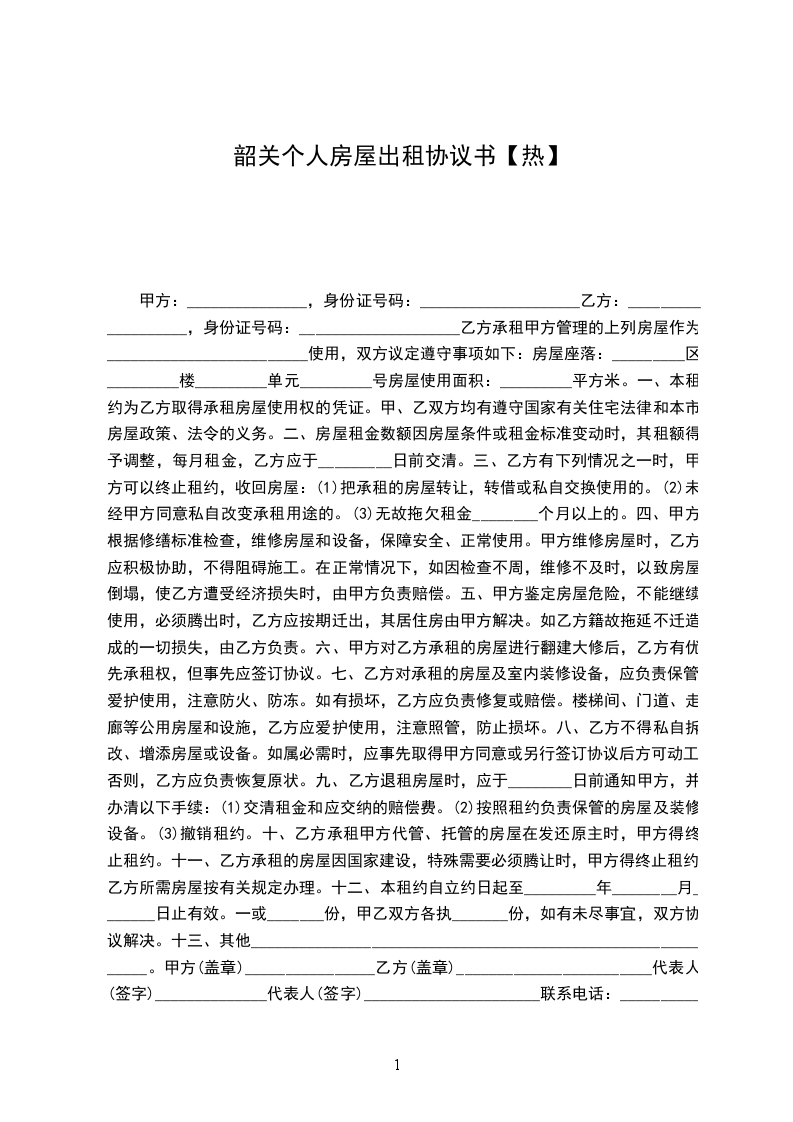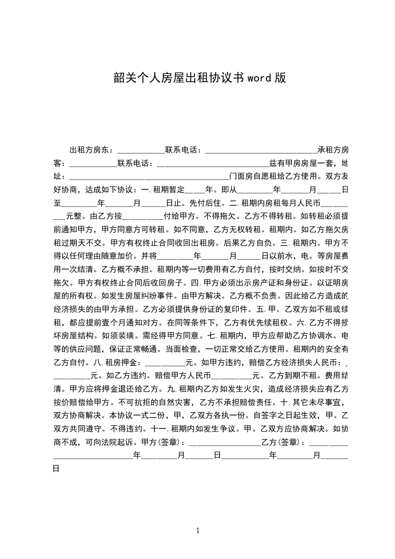 现经甲乙双方充分了解、协商,一致达成如下个人租房协议书: