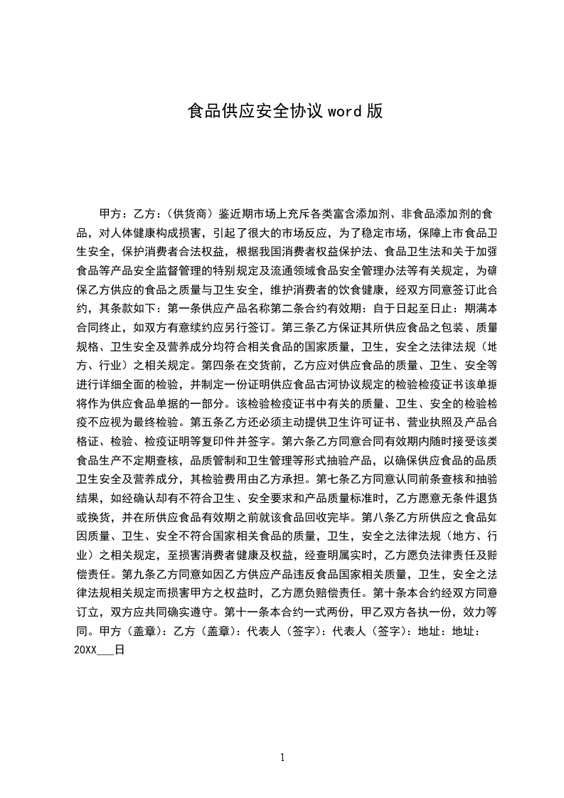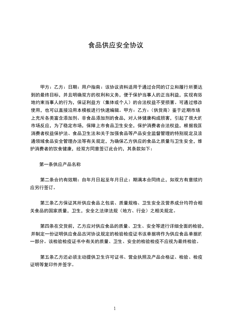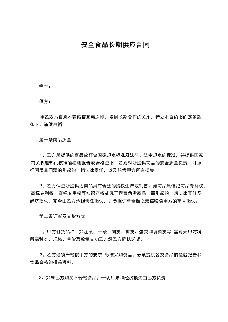 第七条:乙方需按照甲方的订单提供质优、量足、新鲜、无损坏、无挤压的合格的食品,否则甲方有权拒收,由此造成的损失由乙方自负。乙方负责将产品保质保量地按约定时间送到甲方。