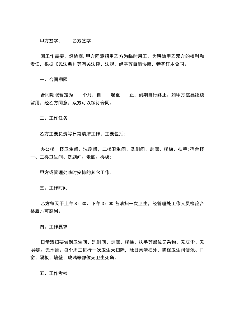 根据《_________》的规定,单位因生产、工作需要招用_________同志为临时工,经双方协商同意,签订本劳动合同。