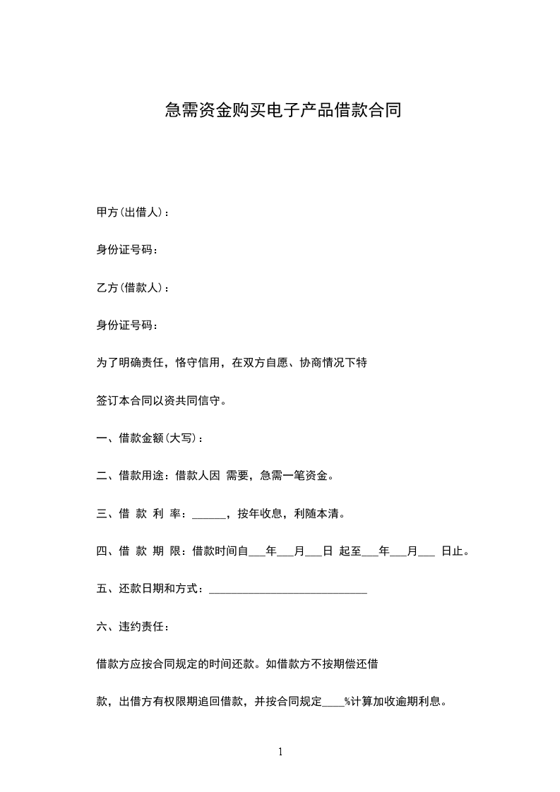 二、借款用途:借款人因___需要,急需一笔资金。