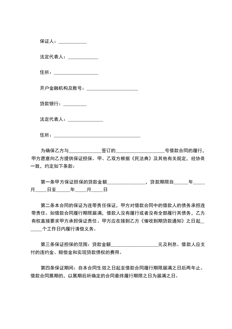为确保乙方与______________签订的_____________________号借款合同的履行,甲方愿意向乙方提供保证担保。甲、乙双方根据《民法典》及其他有关规定,经协商一致,约定如下条款: