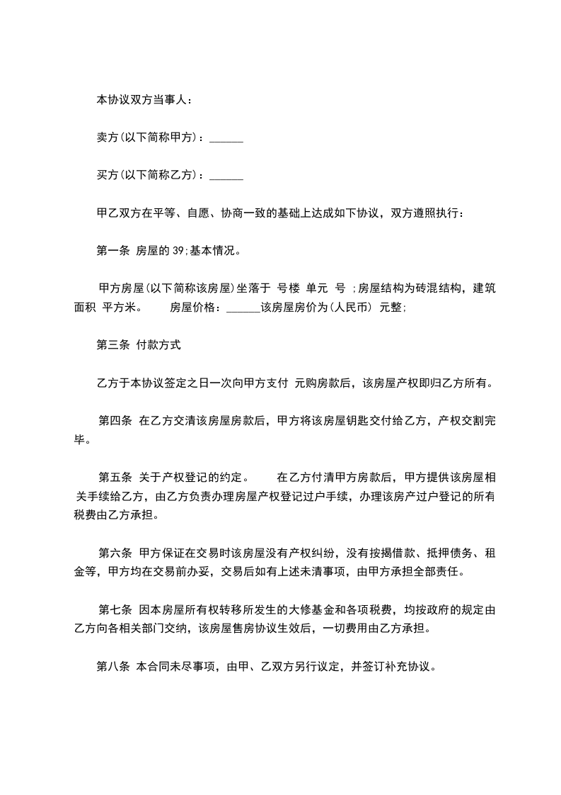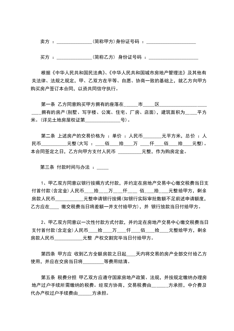 第一条房屋基本情况。甲方房屋坐落于________________;位于第_____层。