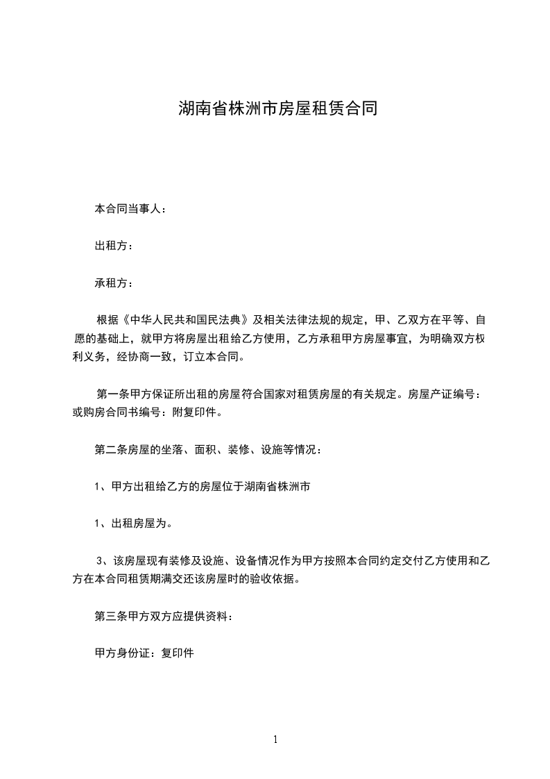 1、甲方出租给乙方的房屋位于湖南省株洲市