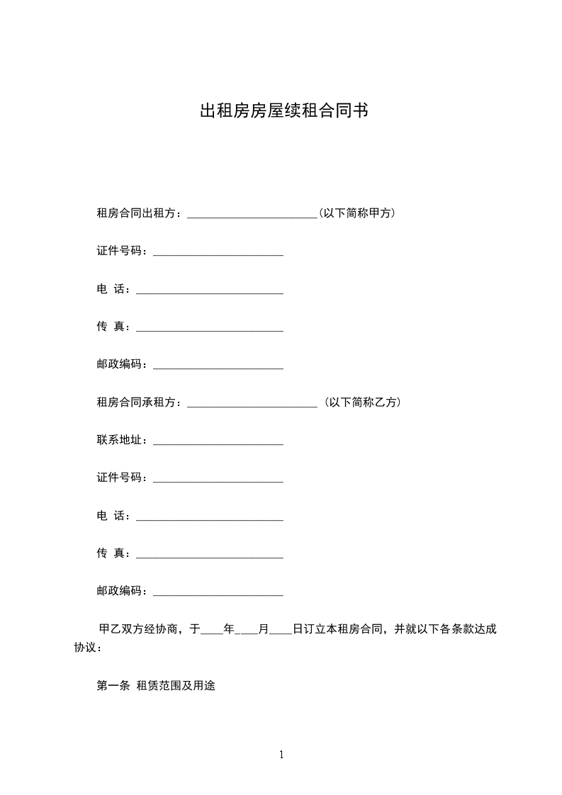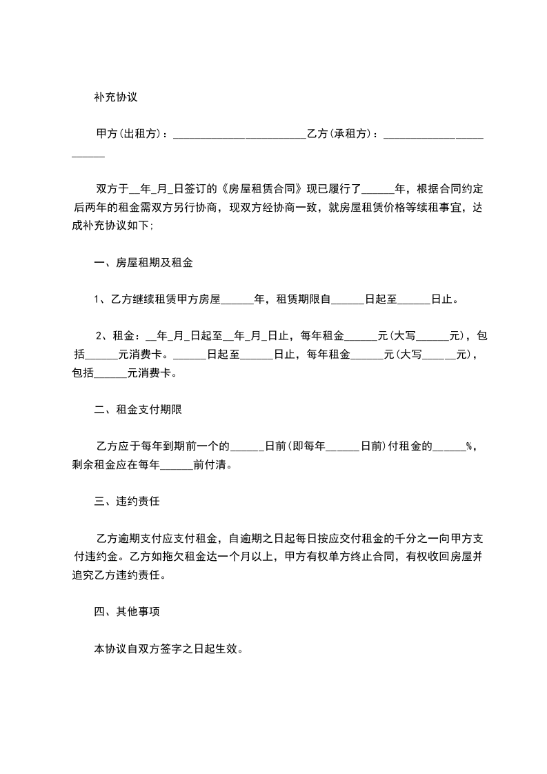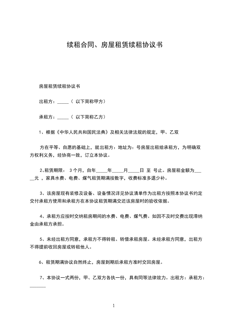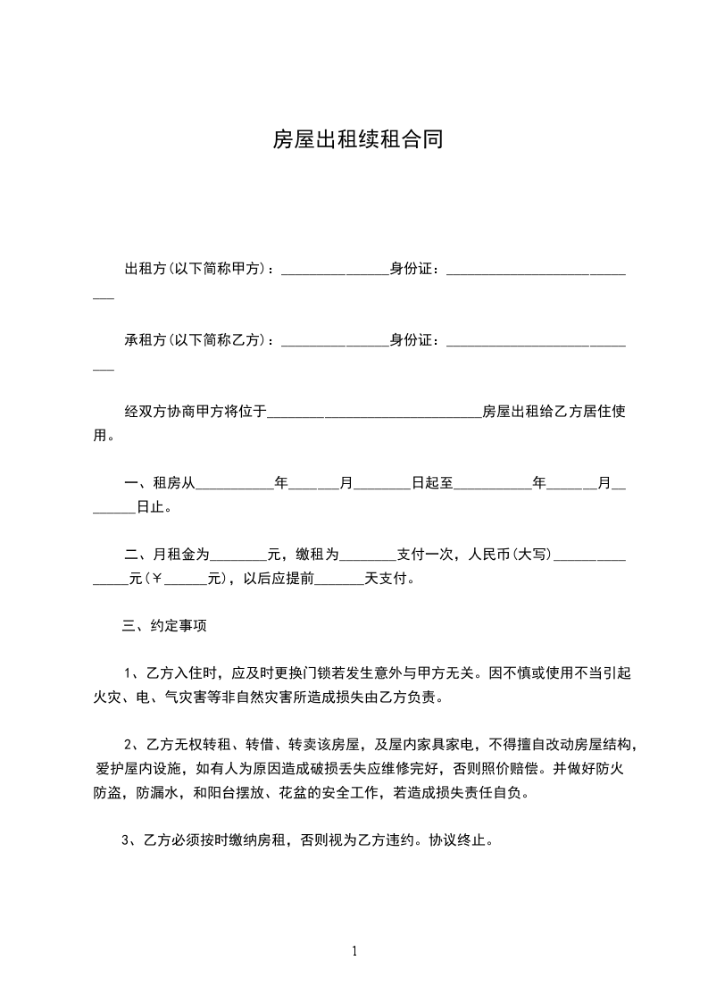 乙方愿意续租甲方上述房屋,租期为______,从______年______月______日至______年____月______日。乙方支付甲方押金不变,租赁期满,乙方无违约情况并履行完下述交房手续后,甲方应将押金无息退还给乙方。