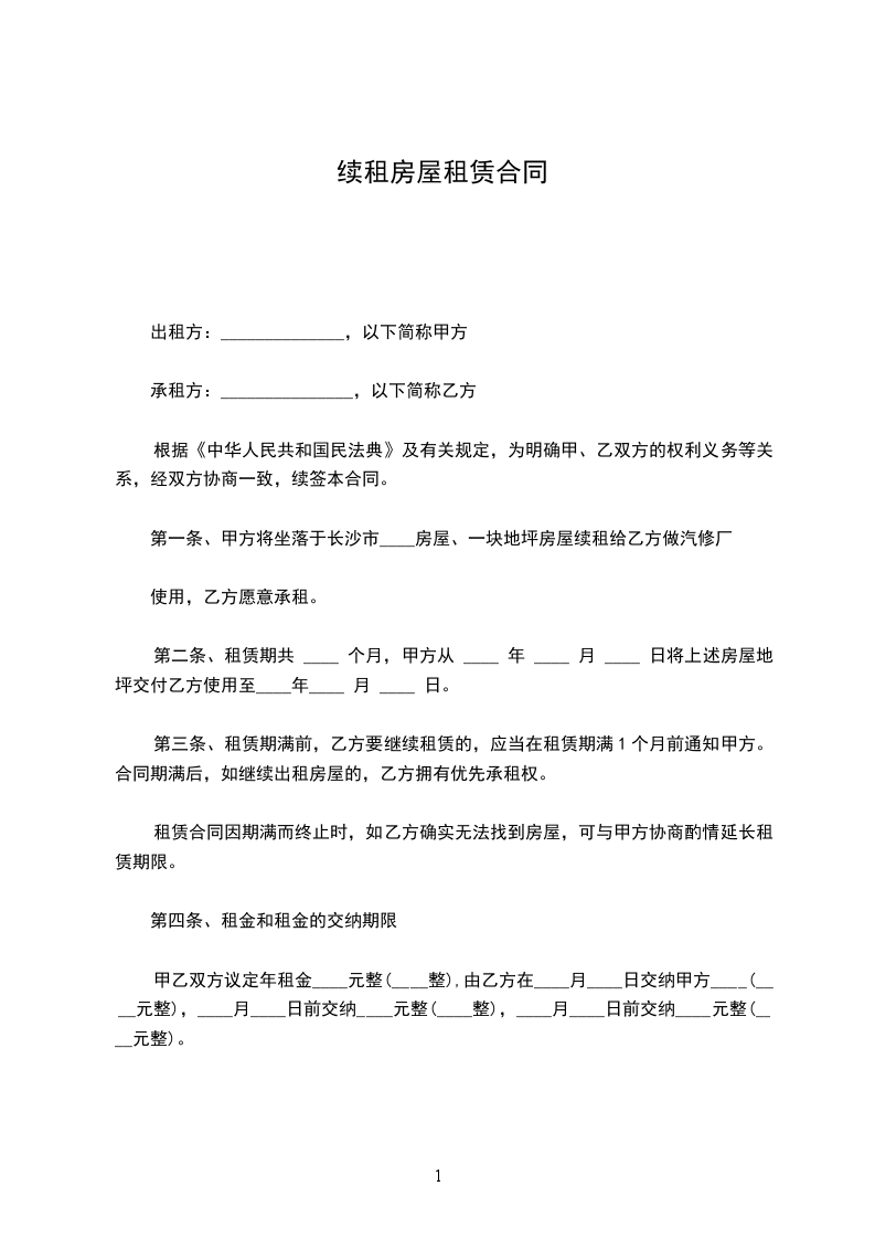一、续租期间自_____年___月___日至_____年___月___日,计___________月