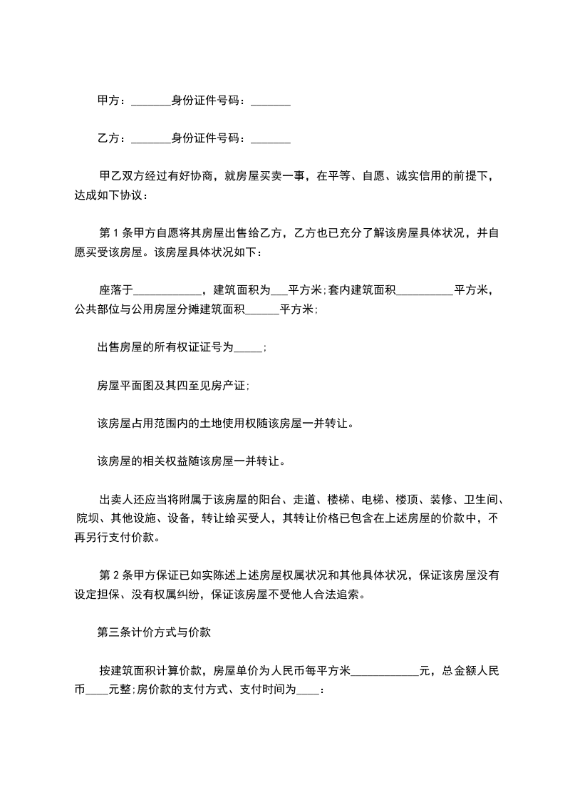 第1条甲方自愿将其房屋出售给乙方,乙方也已充分了解该房屋具体状况,并自愿买受该房屋。该房屋具体状况如下: