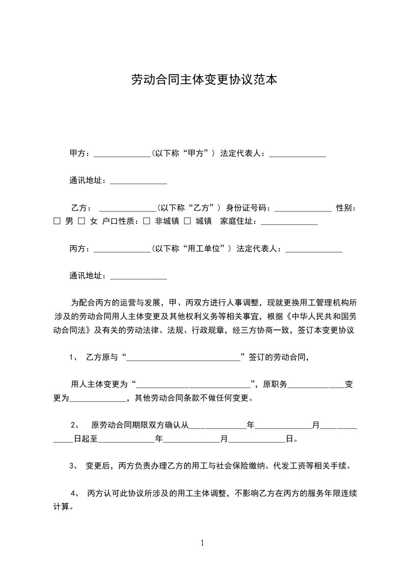 根据甲乙双方与公司共同签署的《劳动合同主体变更协议》约定,丙方与乙方之间的劳动合同尚未履行部分,由甲方与乙方继续履行。为了保证甲乙双方今后合同履行的顺利,双方在重申上述劳动合同未履行部分的要点同时,又达成如下补充协议: