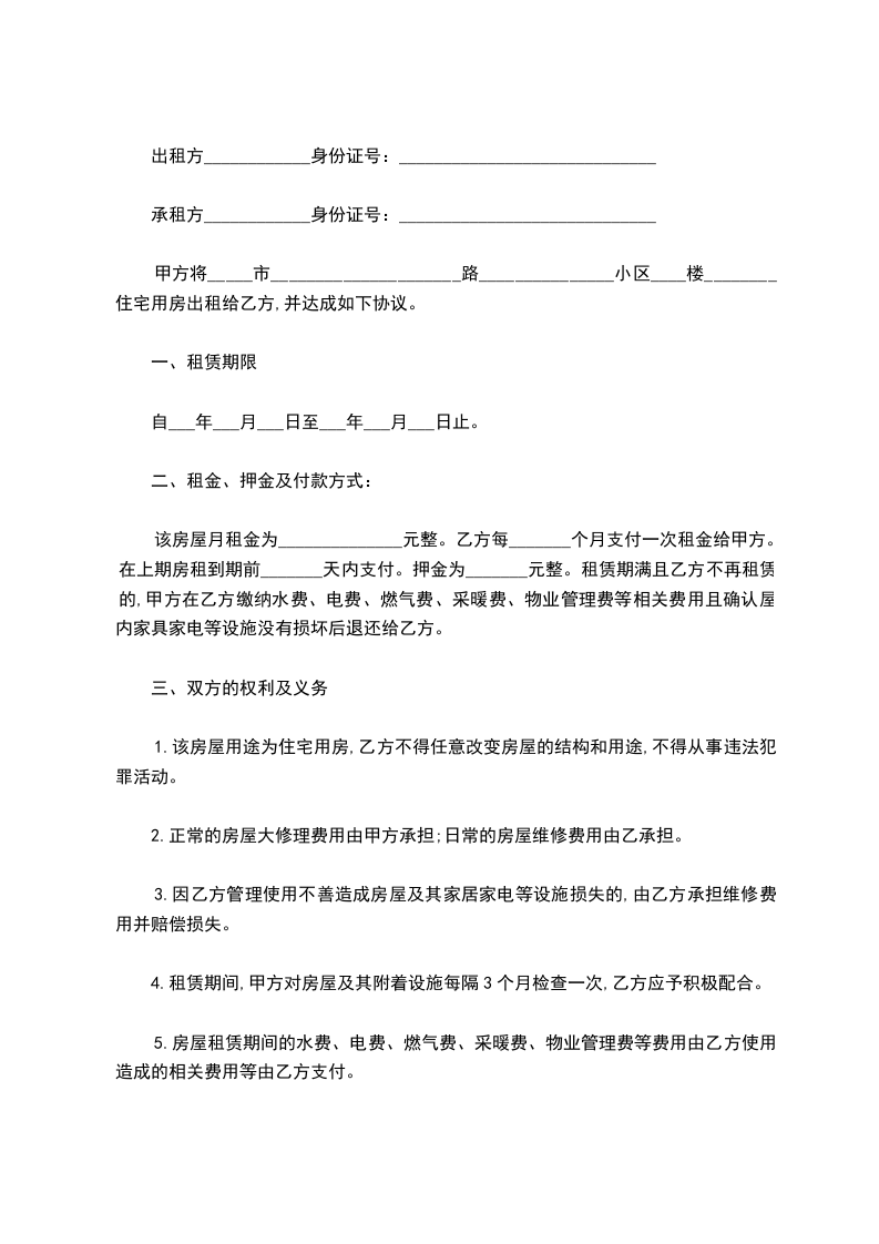 1.该房屋用途为住宅用房,乙方不得任意改变房屋的结构和用途,不得从事违法犯罪活动。