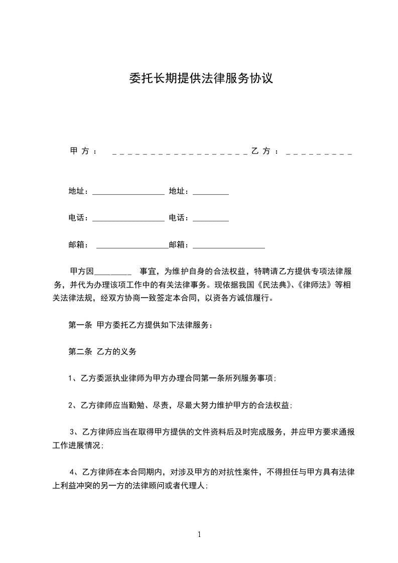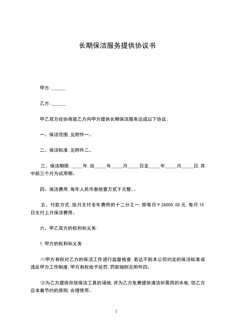 甲乙双方经协商就乙方向甲方提供长期保洁服务达成以下协议: