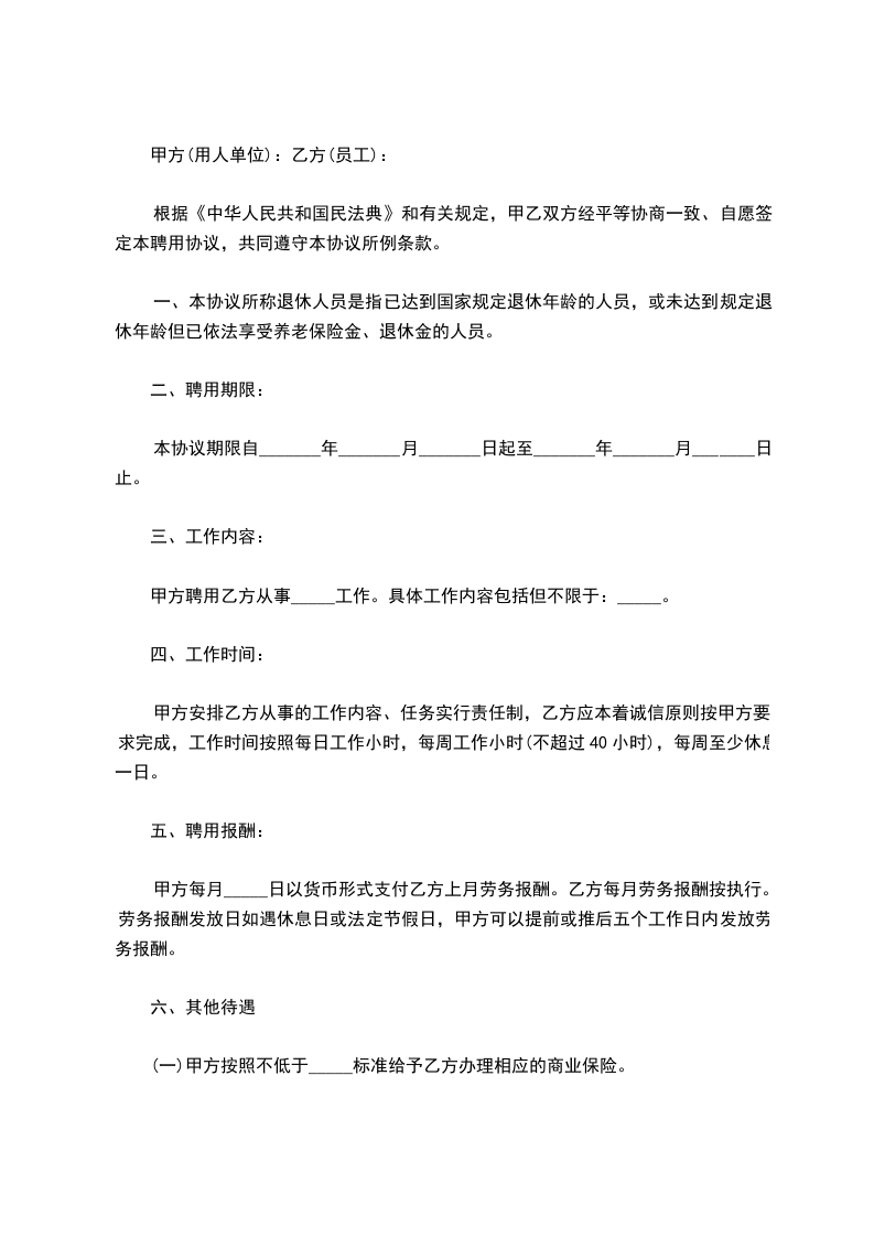 根据《中华人民共和国民法典》和有关规定,甲乙双方经平等协商一致,自愿签订本聘用协议,共同遵守本协议所列条款。