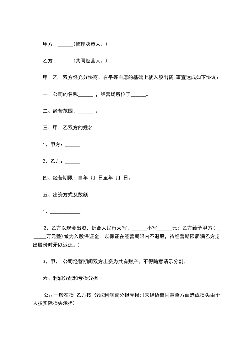 2、公司成立后,资金将由开立的公司账户统一收支,财务统一交由甲乙双方共同聘任的财务会计人员处理。公司账目应做到日清月结,并及时提供相关报表交甲乙双方签字认可备案。