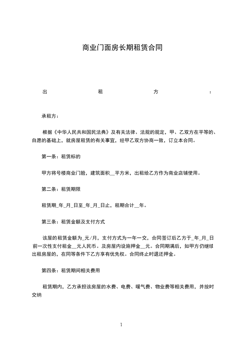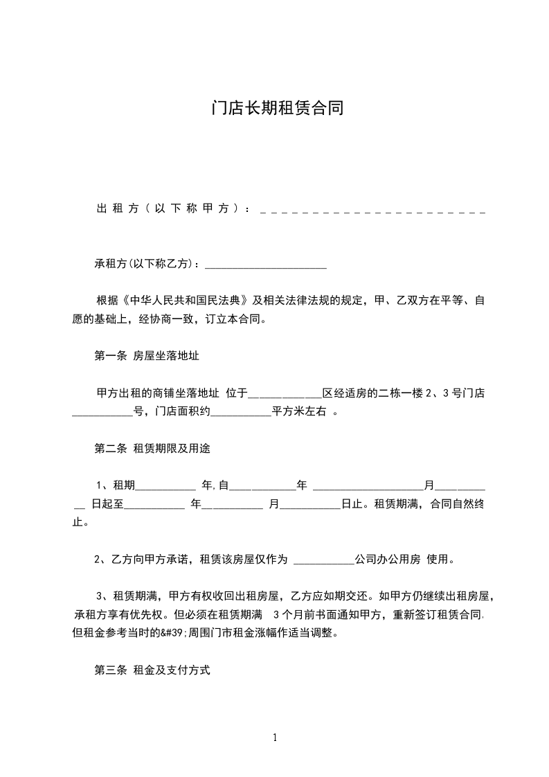 根据《中华人民共和国民法典》相关规定,经双方友好协商,就甲方将其拥有的门面房出租给乙方一事,达成如下协议: