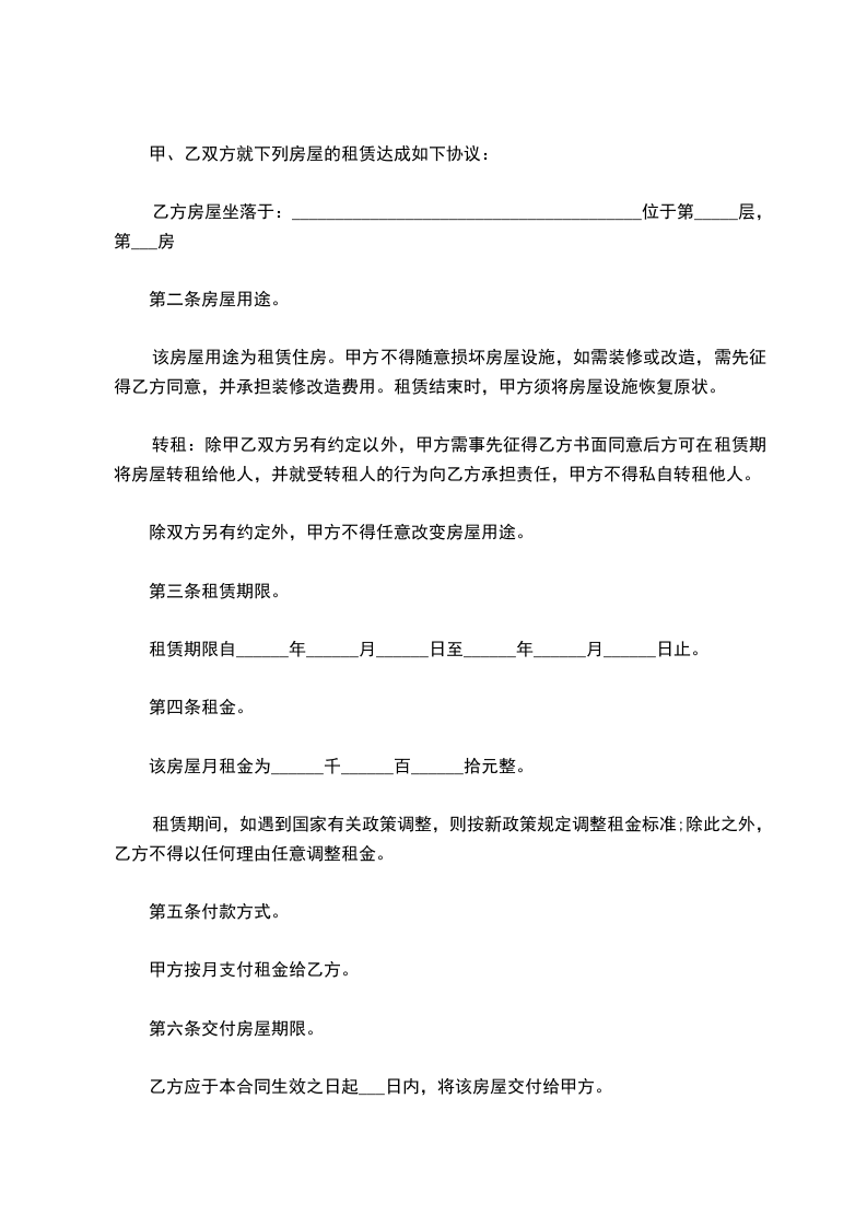 该房屋月租金为______千______百______拾元整。