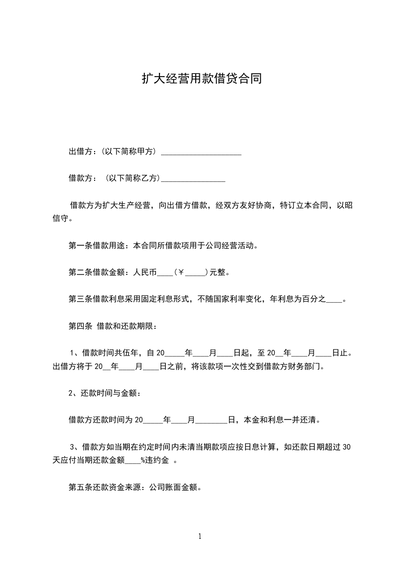 借款方为扩大生产经营,向出借方借款,经双方友好协商,特订立本合同,以昭信守。