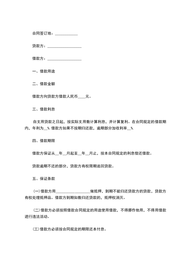 1、借款时间共伍年,自_____年_____月_____日起,至_____年_____月_____日止。出借方将于_____年_____月_____日之前,将该款项一次性交到借款方财务部门。