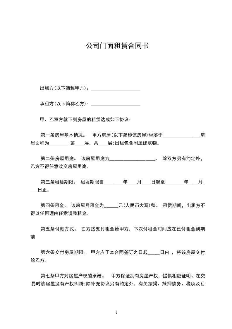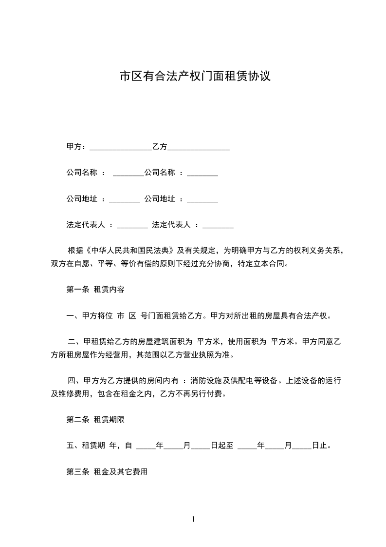 一、甲方将位于__市区号门面租赁给乙方。甲方对所出租的房屋具。