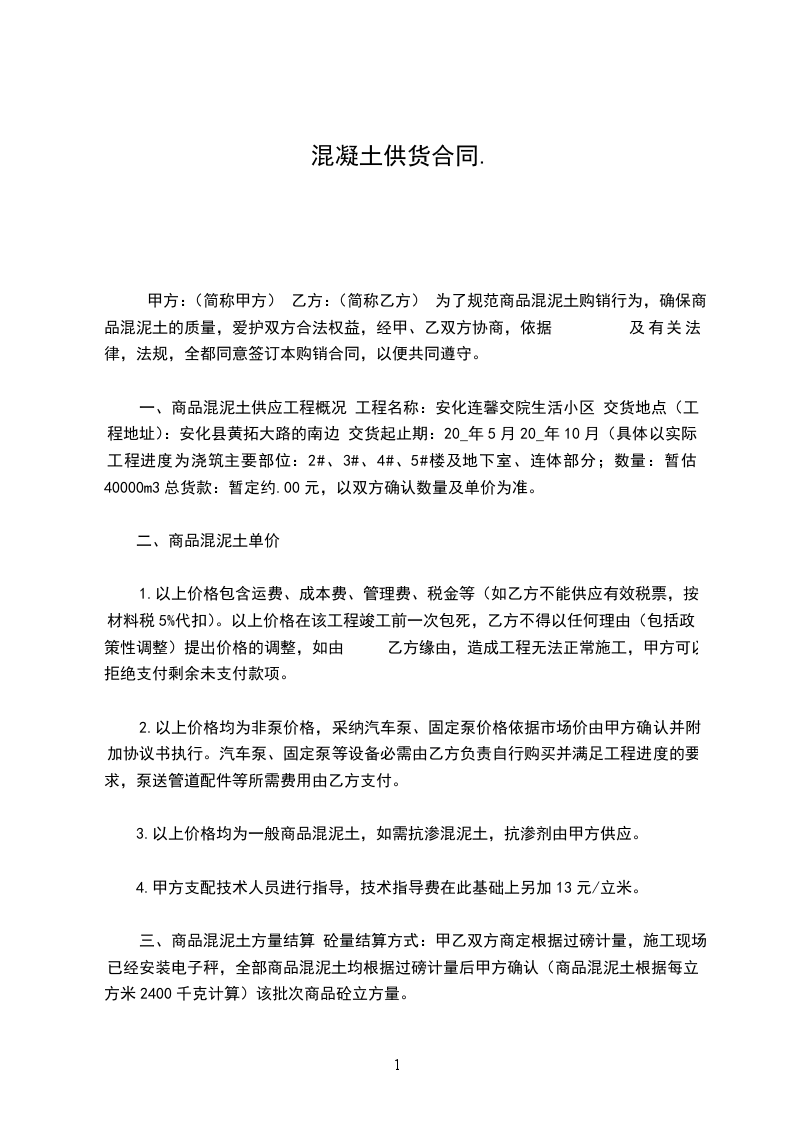 2、在预拌混凝土供应过程中,甲乙双方如需更改约定的重要技术数据,要求更改一方必须出具有效书面凭证。
