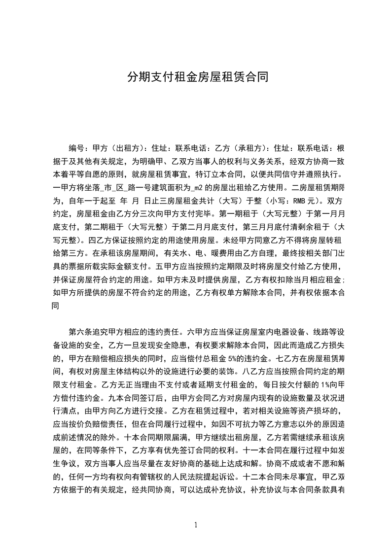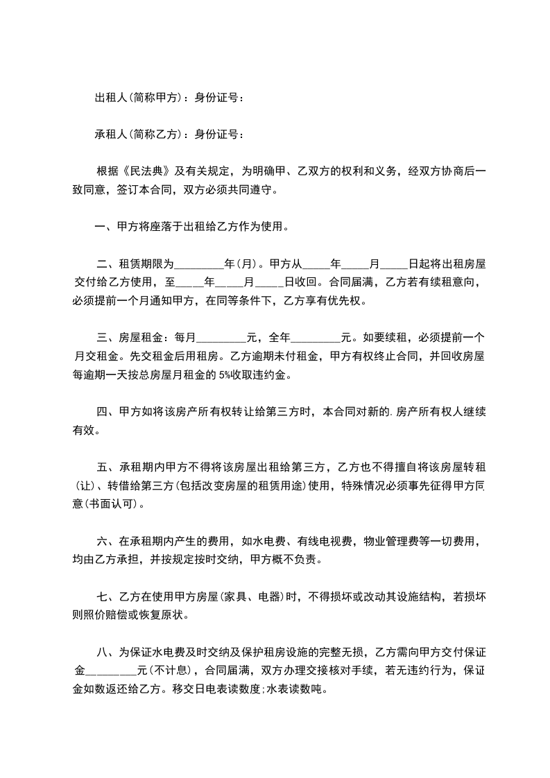 1、若出租方在承租方没有违反本合同的情况下提前解除合同或租给他人,视为出租方违约,负责赔偿违约金_________元。