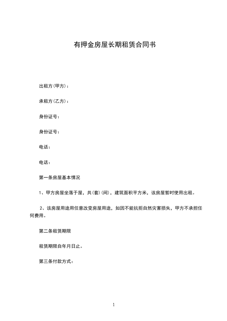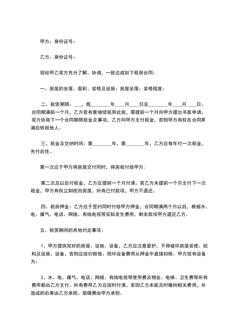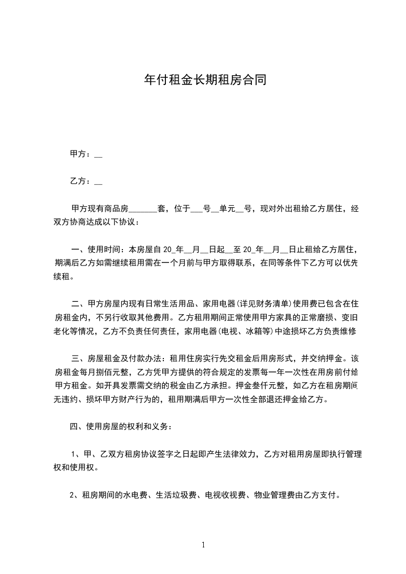 租金标准及支付方式:年付,房屋押金待合同期满或特殊情况导致的合同结束,乙方退租后返还。