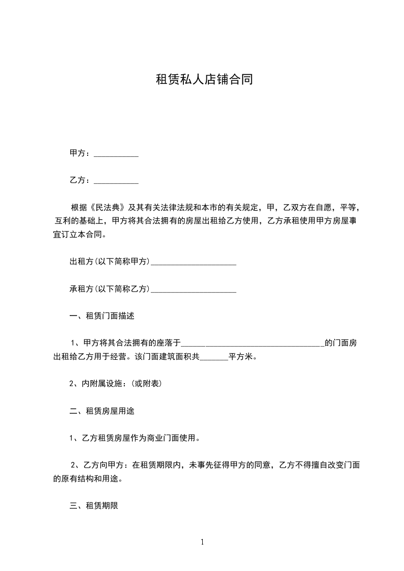 二、房屋租赁期为___止,年租金为___元人民币租金为每一年交付一次,店铺转让给乙方后,并每季度定期交纳租金及该合同所约定的应由甲方交纳的水电费及其他各项费用。