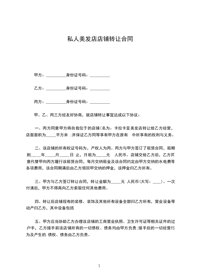三、转让后店铺现有的装修、装饰及其他所有设备全部归乙方使用。