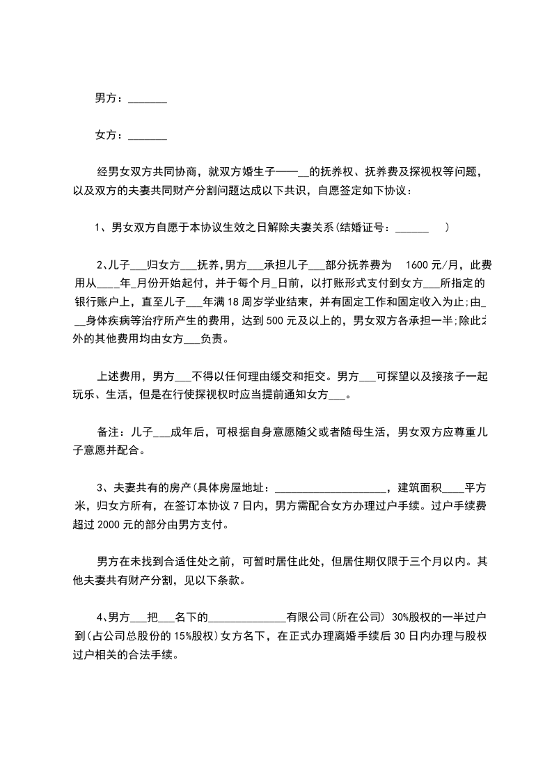 1、探望子女的时间;