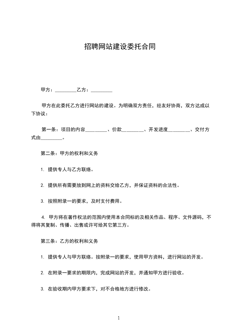 3、在附录一要求的期限内,完成网站的开发,并通知甲方进行验收。