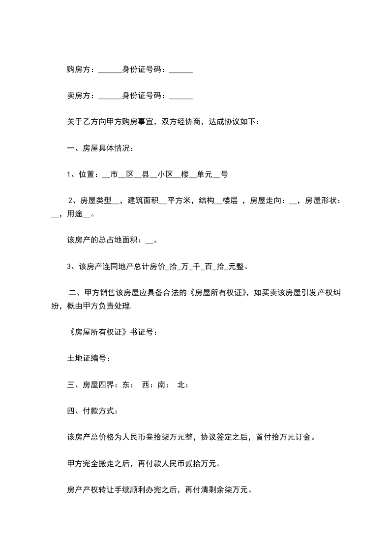 关于乙方向甲方购房事宜,双方经协商,达成协议如下: