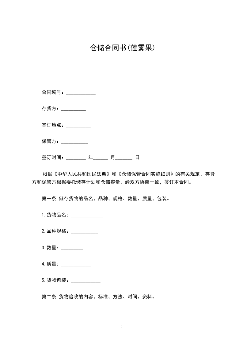 第一条 储存货物的品名、品种、规格、数量、质量、包装。