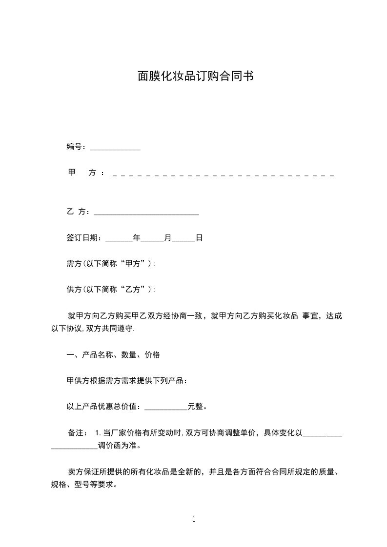 ⒈甲方向乙方提供的产品为质量合格产品;