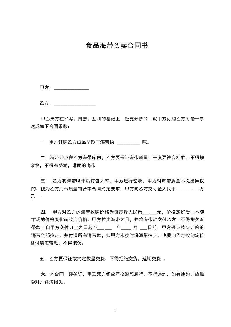 甲乙双方在平等,自愿,互利的基础上,经充分协商,就甲方订购乙方海带一事达成如下合同条款: