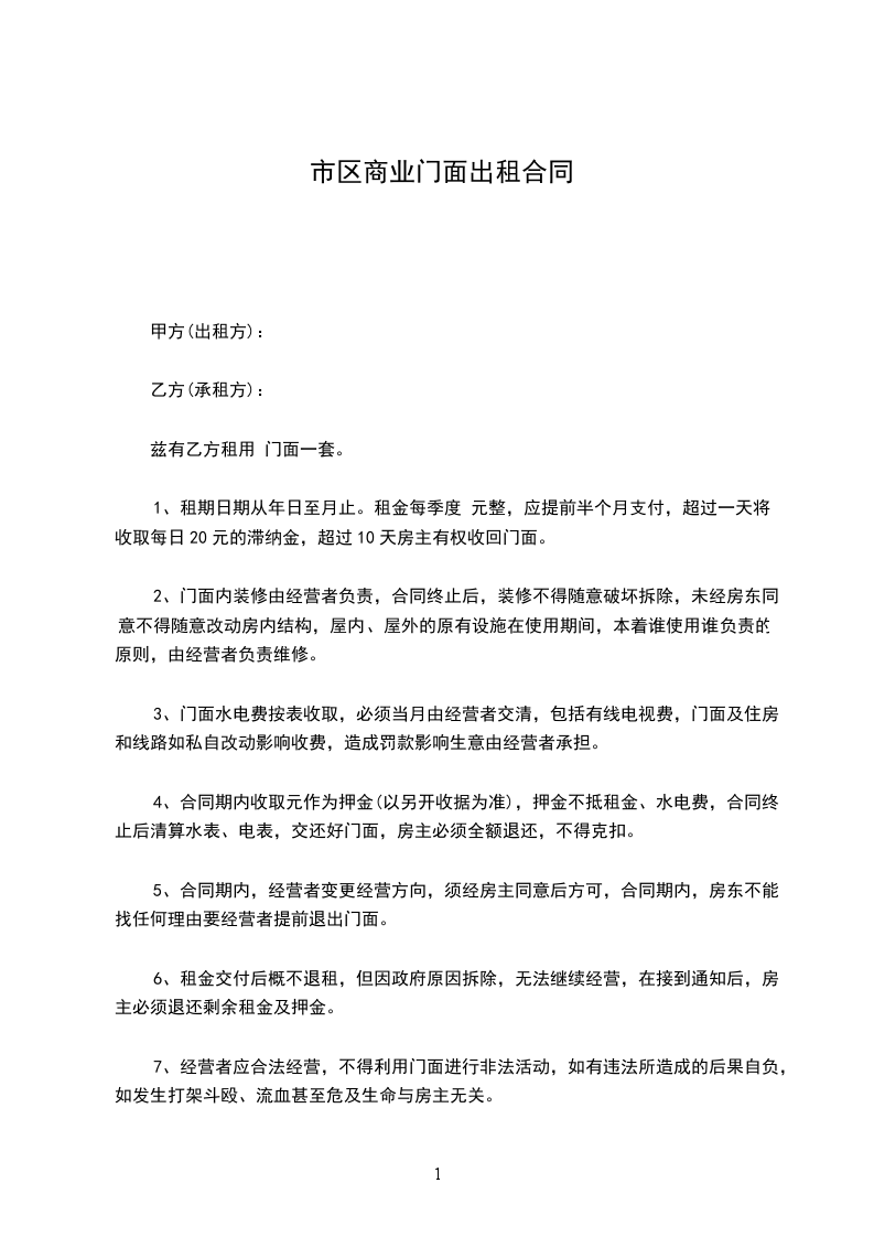 1、租期年,自_____至_____止。第一年租金元年整,大写。以后租金随周围其他房屋的租费随行就市上调或下降,房产税由甲方承担。
