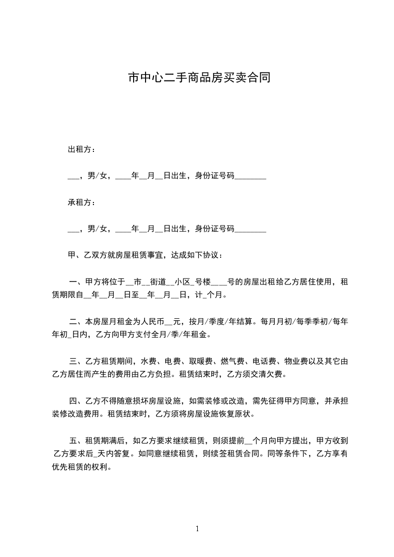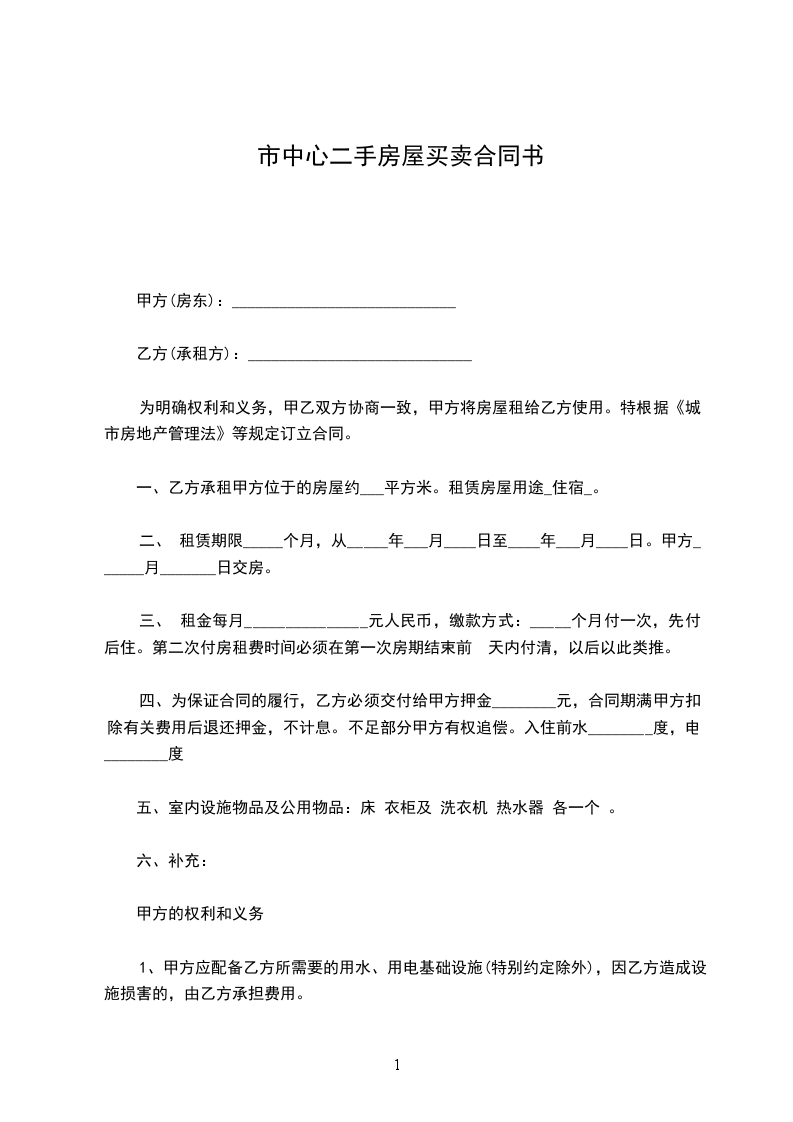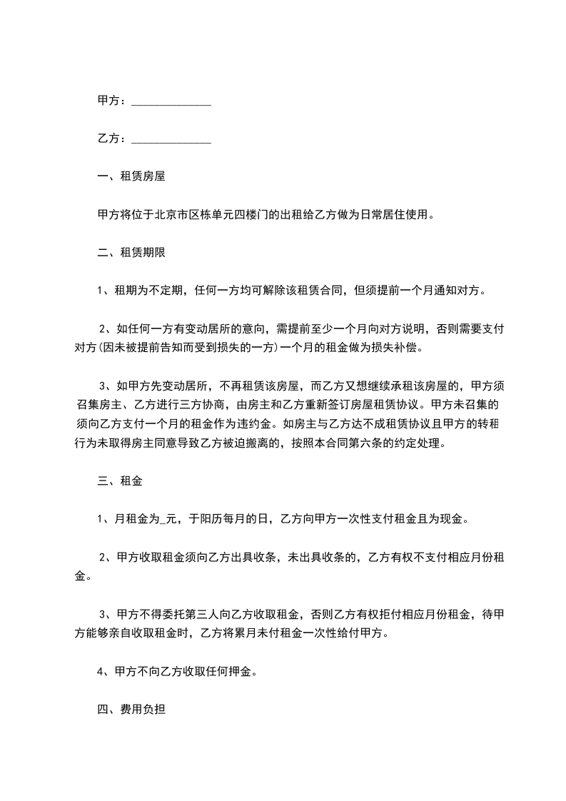 一、租房地点:甲方同意把__________________________________室的房屋租给乙方,并保证该房的合法出租性。