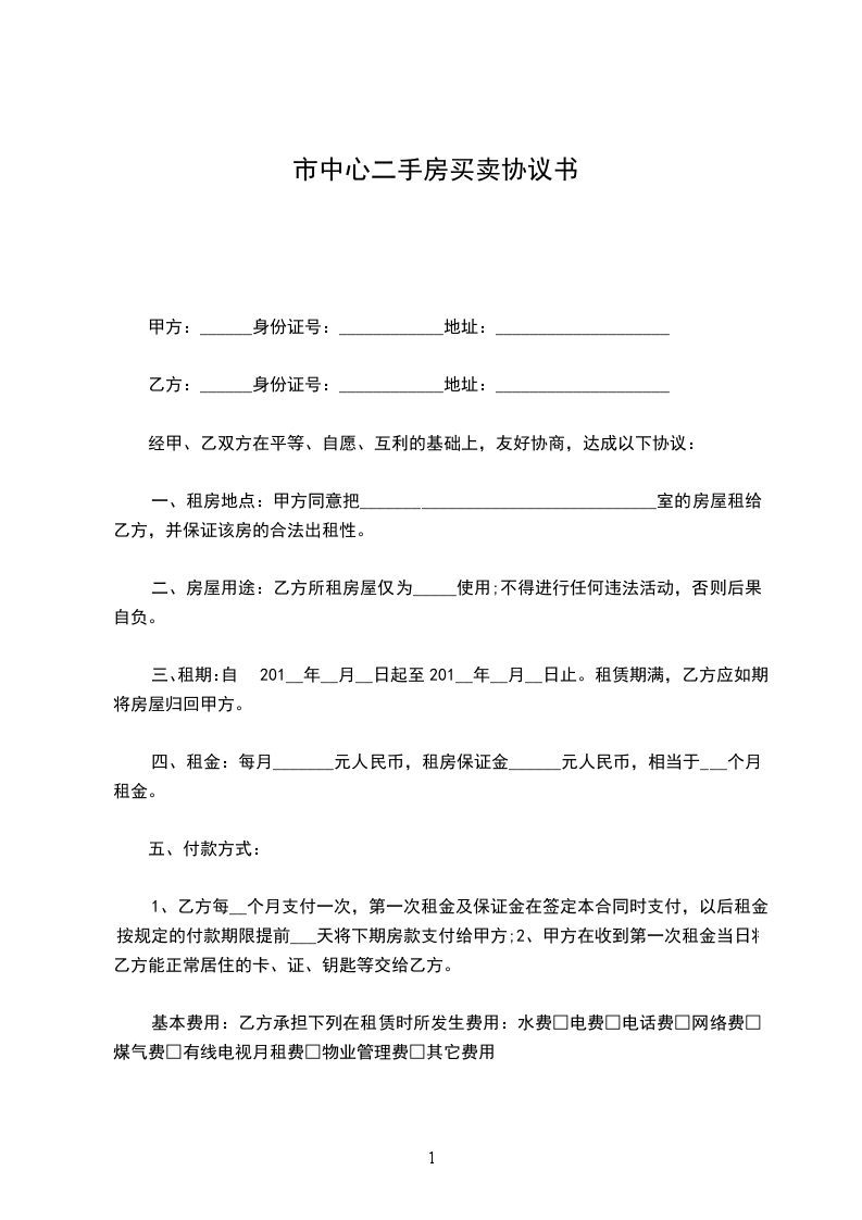 乙方:______身份证号:____________地址:____________________