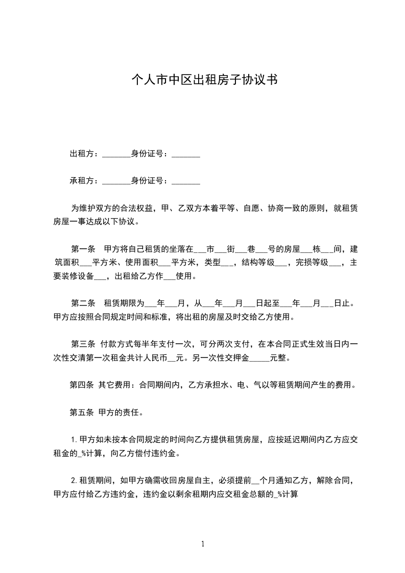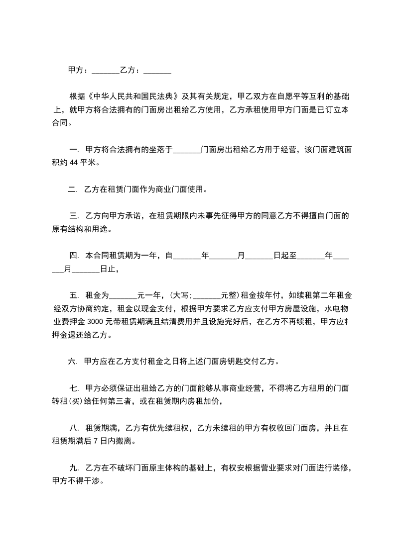 4、支付首次租金及保证金为人民币_______元正由合同签订后三日内支付甲方,甲方开具收据。