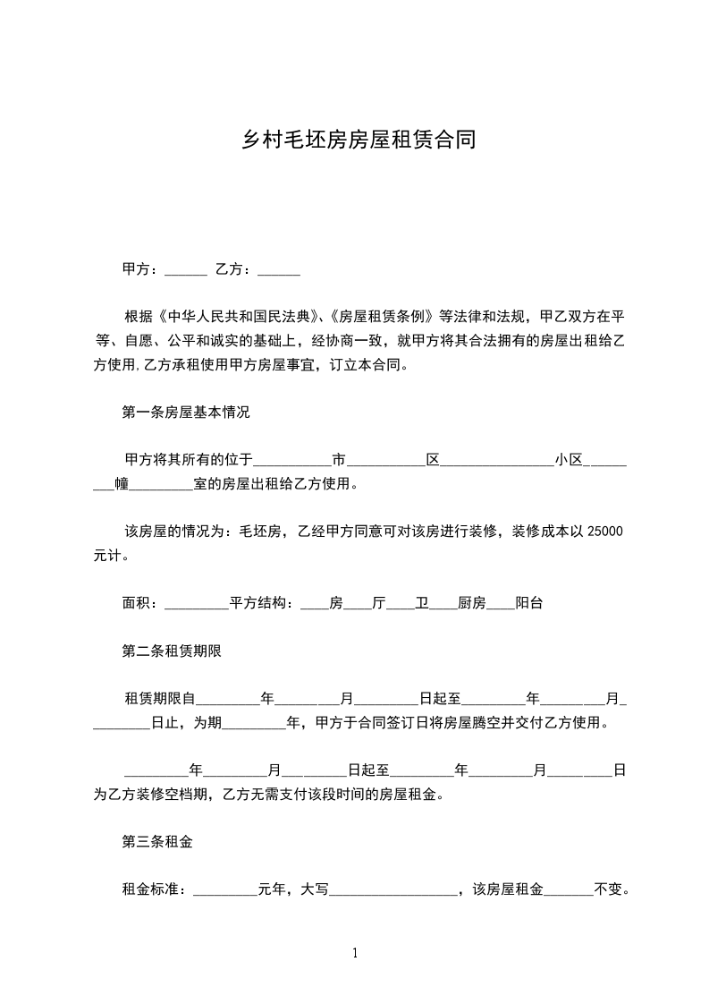 该房屋的情况为:毛坯房,乙经甲方同意可对该房进行装修,装修成本以25000元计。