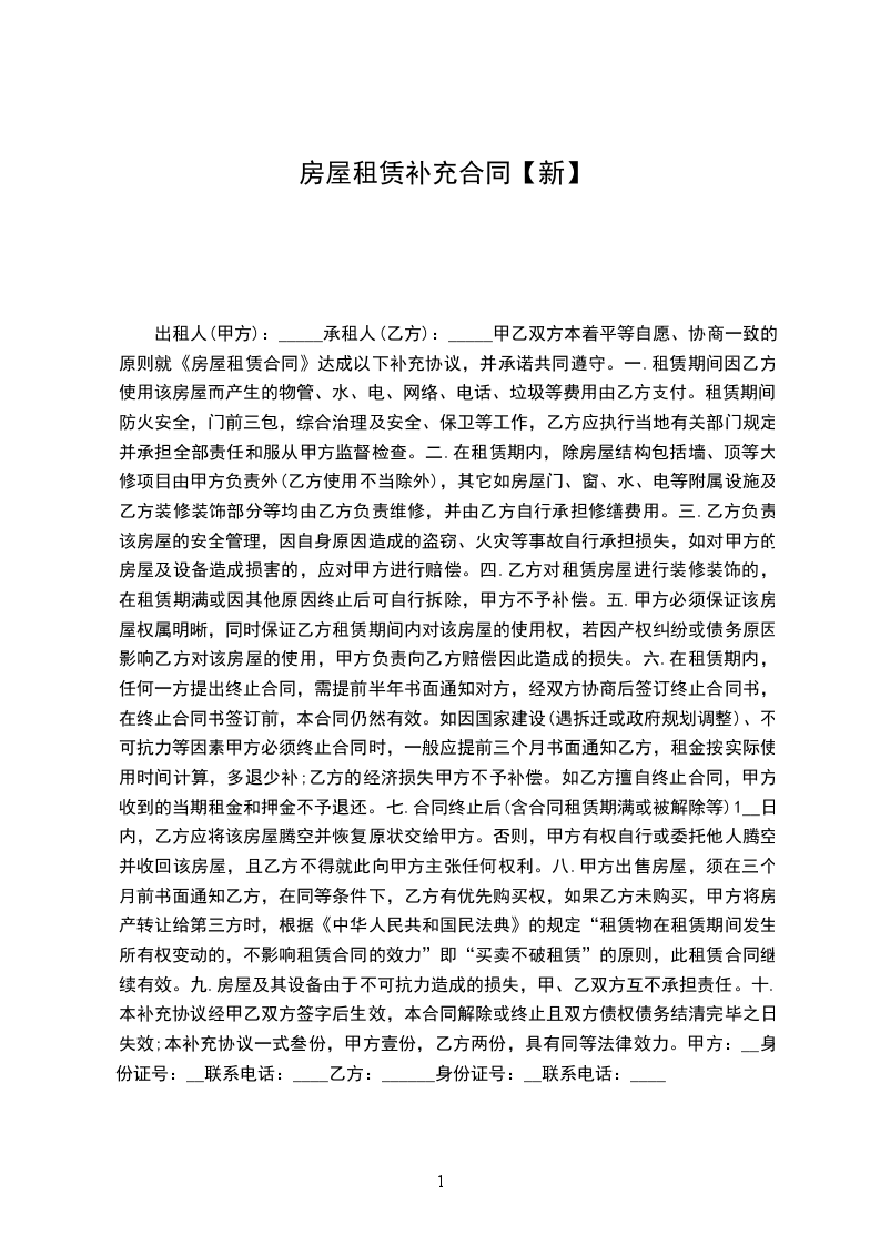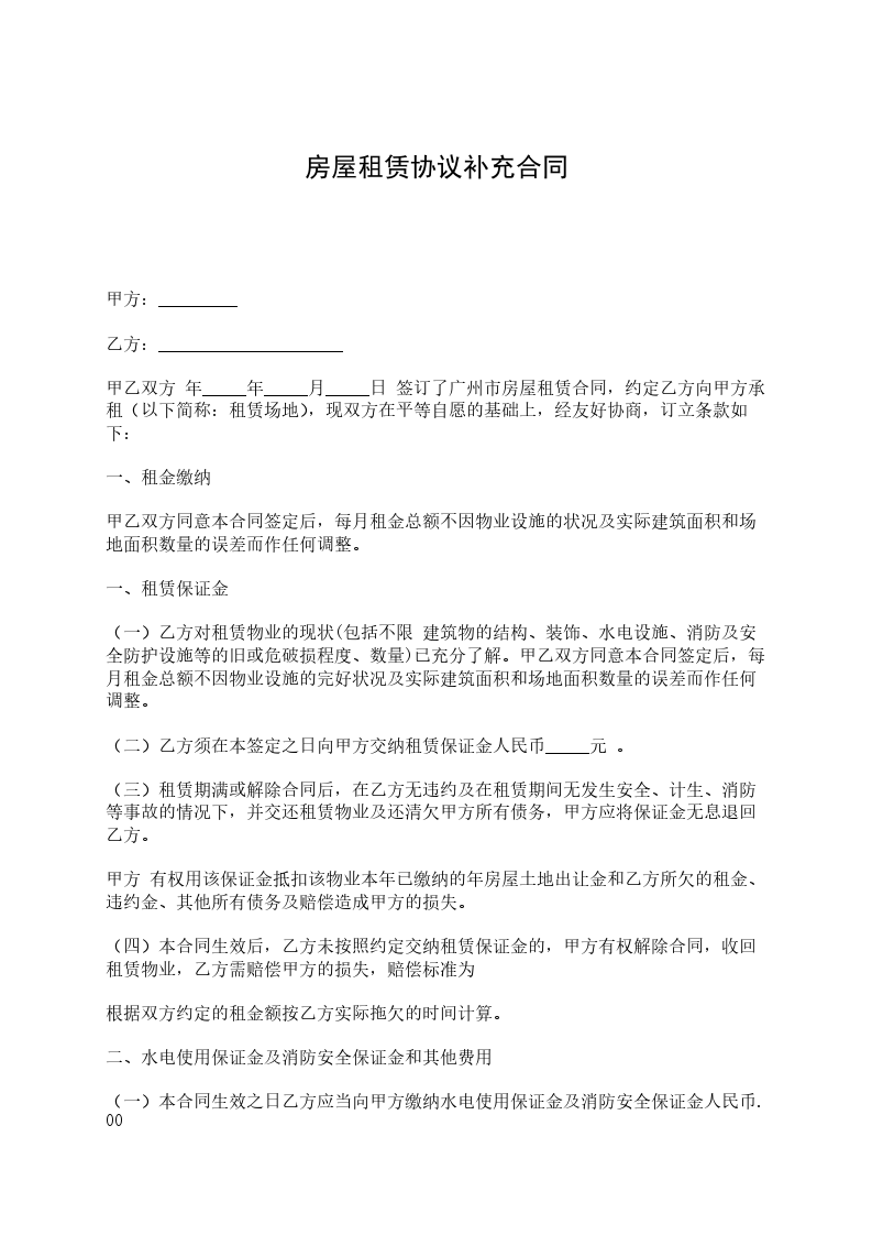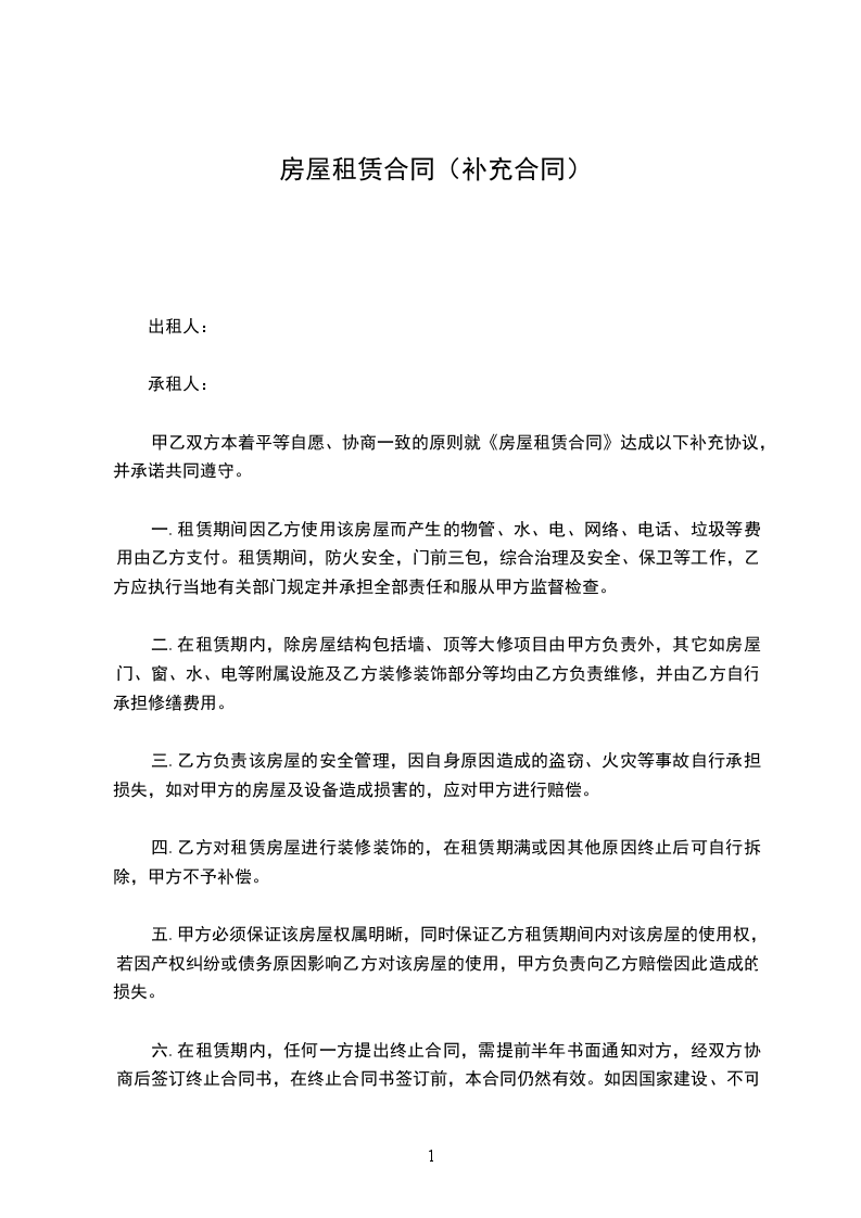 甲乙双方本着平等自愿、协商一致的原则就《房屋租赁合同》达成以下补充协议,并承诺共同遵守。