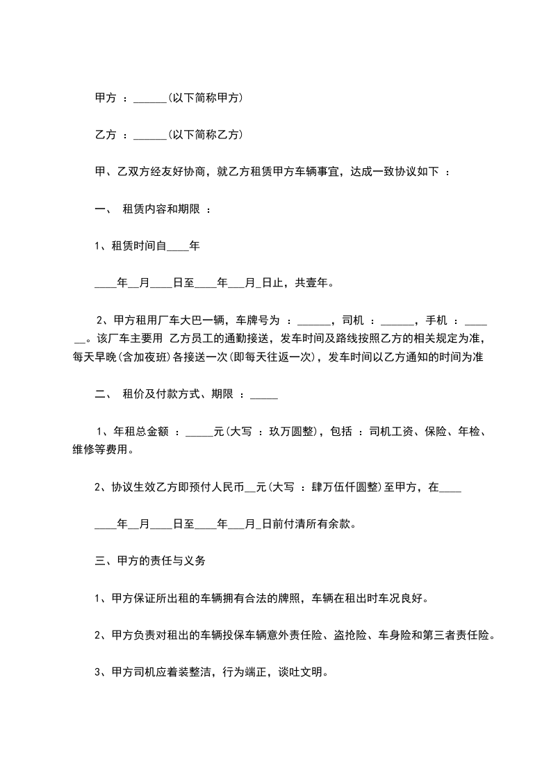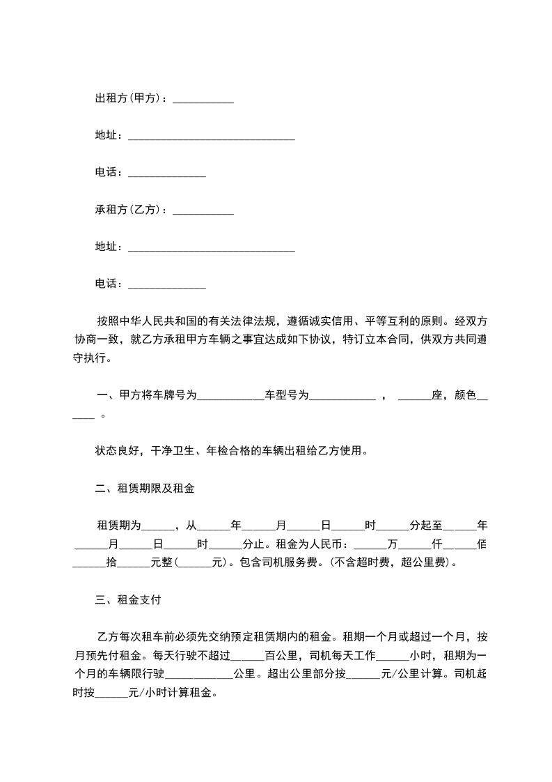 甲方同意专门为乙方提供_________辆_________车租给乙方使用,并提供司机为乙方工作。