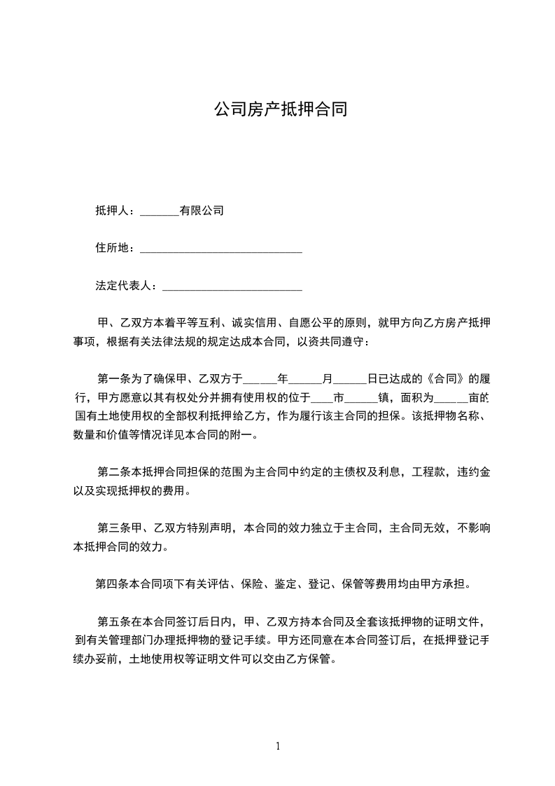 甲、乙双方本着平等互利、诚实信用、自愿公平的原则,就甲方向乙方房产抵押事项,根据有关法律法规的规定达成本合同,以资共同遵守: