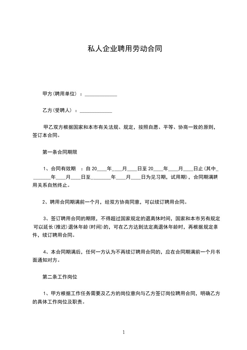 第二条甲方招用乙方在_________工程中担任_________岗位工作。乙方的岗位上岗证号码为_________。
