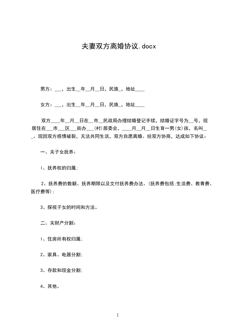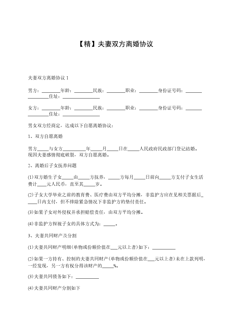 一、男女双方自愿离婚。
