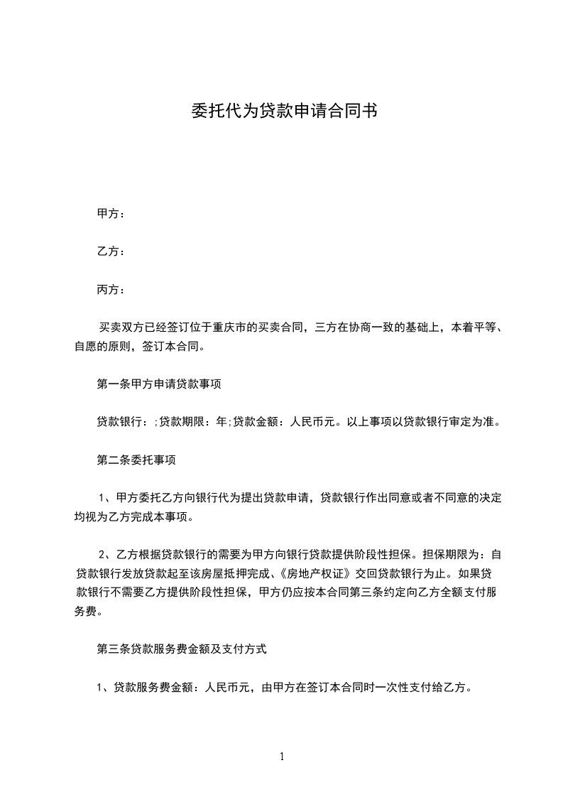 1、甲方委托乙方向银行代为提出贷款申请,贷款银行作出同意或者不同意的决定均视为乙方完成本事项。