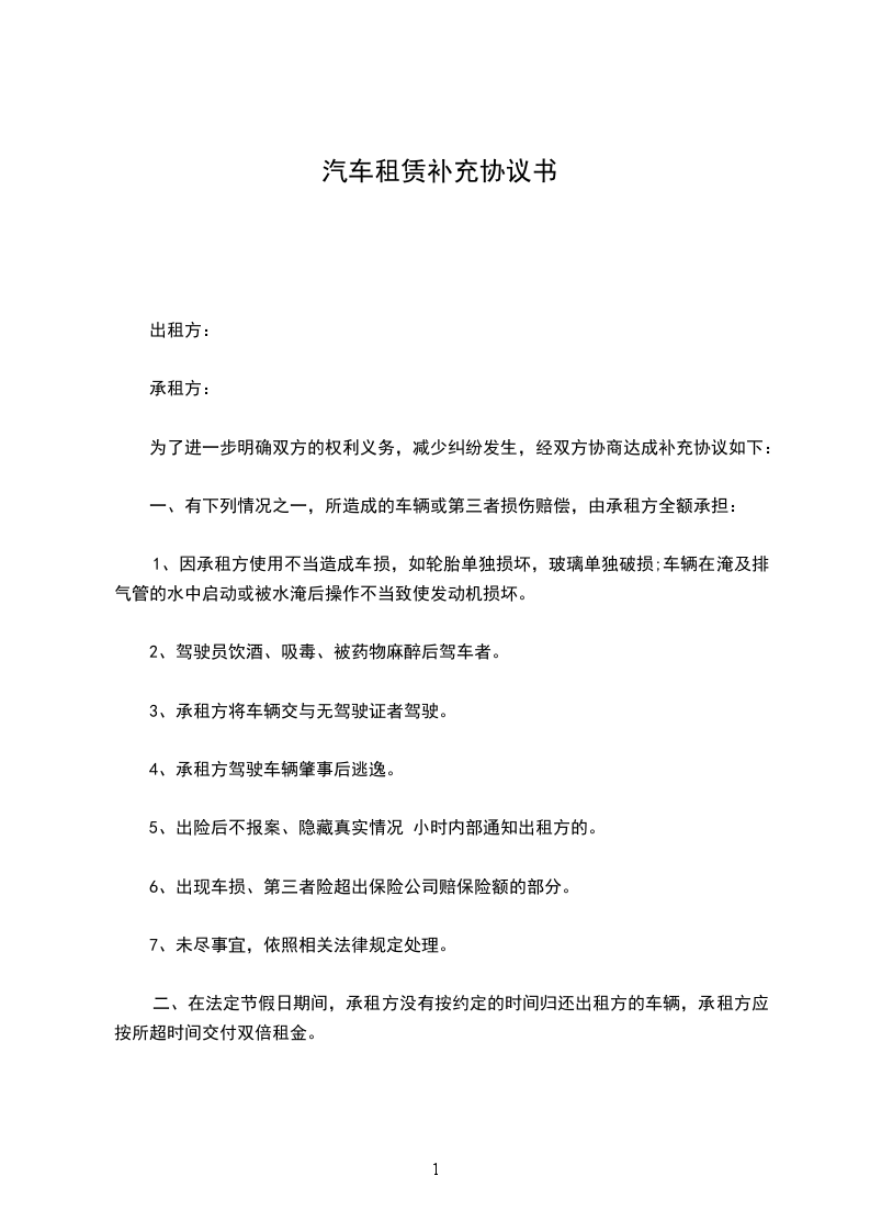 二、在法定节假日期间,承租方没有按约定的时间归还出租方的车辆,承租方应按所超时间交付双倍租金。